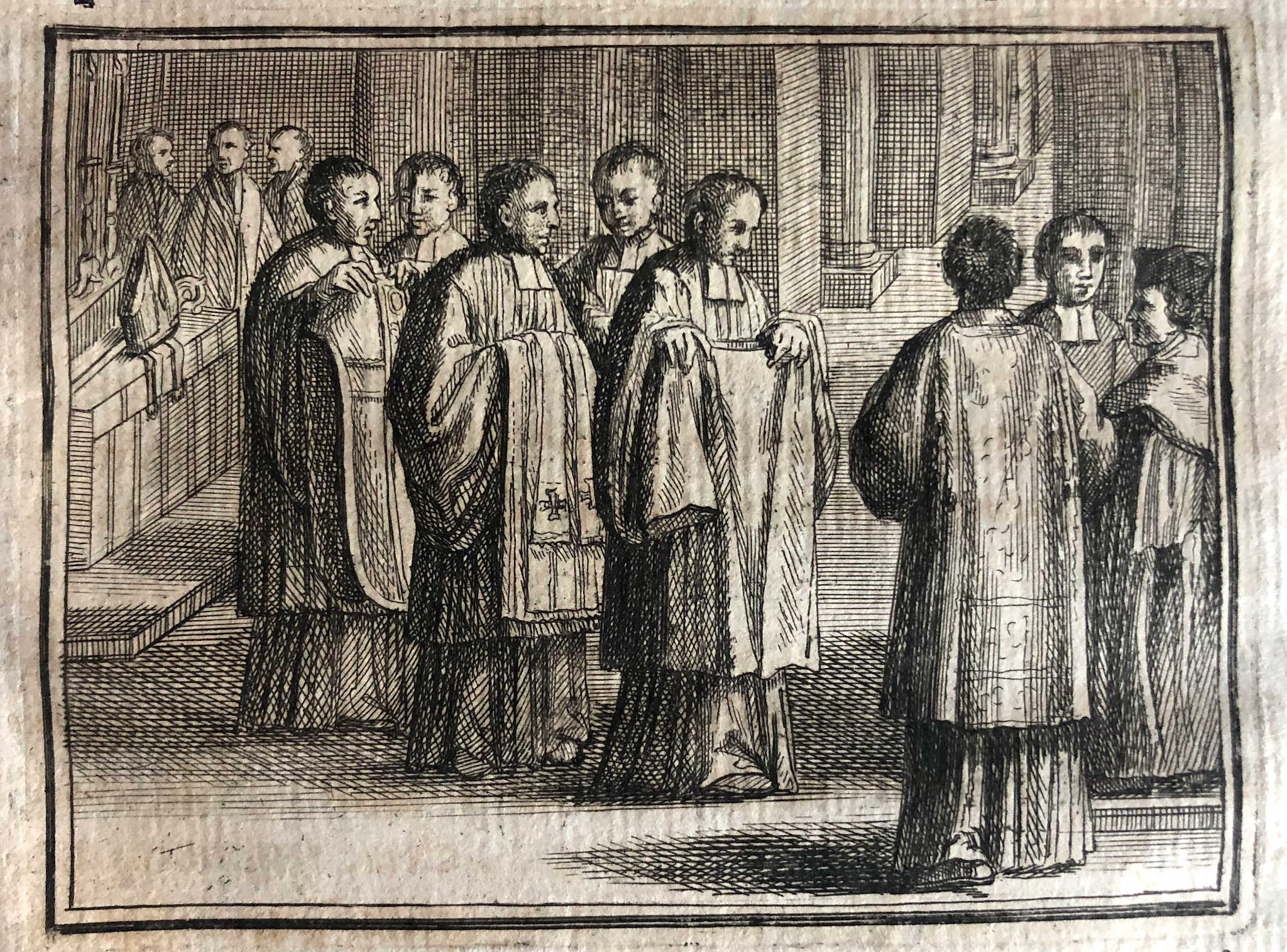 Seção intitulada “Ao amicto”Senhor, colocai sobre a minha cabeça o capacete da salvação, para que possa repelir todos os assaltos diabólicos.